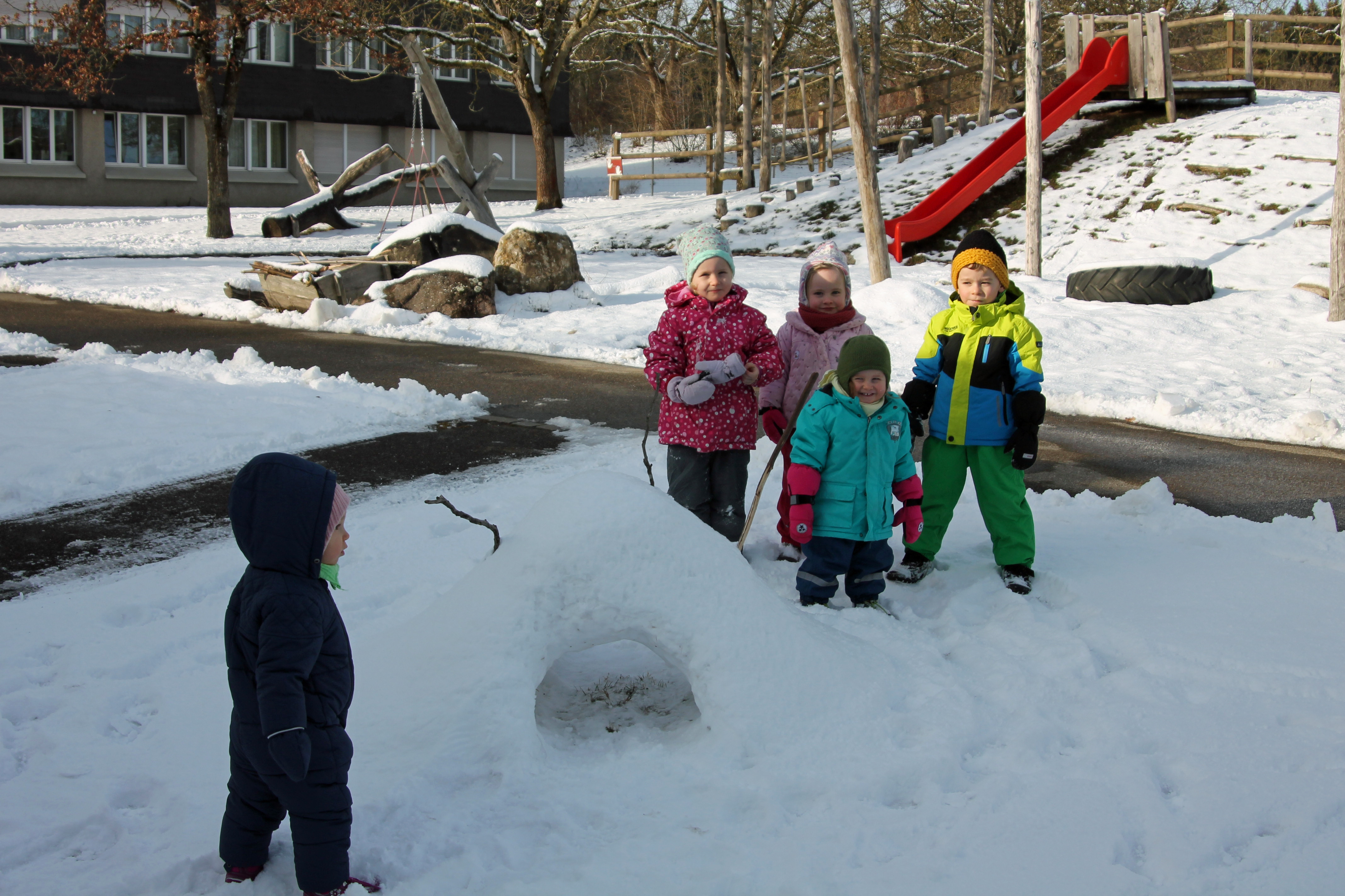 Wir betreuen im Kinderhaus Strickhof täglich bis zu 13 Kinder in einer altersgemischten Gruppe im Alter von drei Monaten bis zum Schuleintritt.